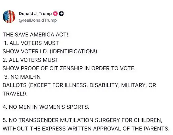 2. Запрет на голосование без предъявления паспорта США - мера, призванная противодействовать предположениям, что демократы побеждают за счёт мигрантов, которые голосуют на выборах.
